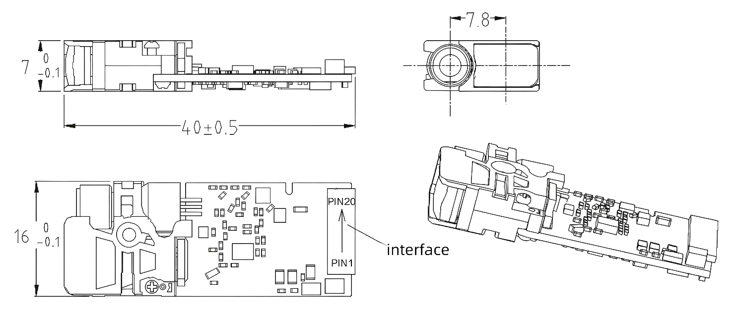 Featuring a 650nm±20nm red laser (0.45-0.95mW, Class2 safety compliant), it’s ultra-slim at 40×16×7mm. Operates on 3.3V DC with low power consumption (<70mA standby, <200mA peak) and wide storage temperature (-20~60℃), ideal for harsh environments.