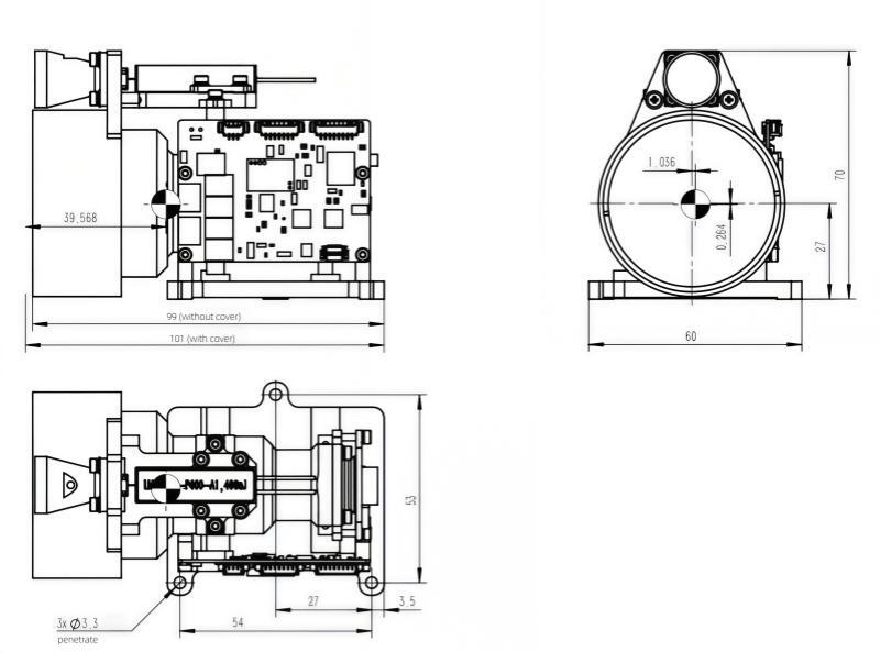 The laser ranging module (Model: NTLR-B12000L) is independently developed by Liangdian Optoelectronics, based on a 1535nm erbium glass laser. It adopts the single-pulse TOF (Time of Flight) ranging method, with a maximum measuring range of ≥15 km.