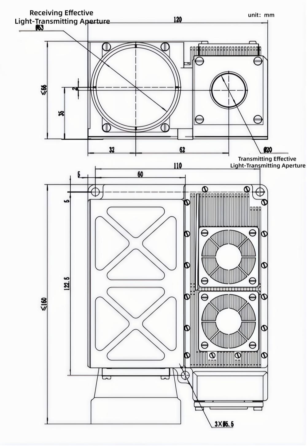 Equipped with core functions including distance gating, first/last target ranging, self-test, and serial port program update, it ensures reliable operation. Weighing only ≤1.5kg with dimensions 160mm×120mm×66mm, it fits diverse setups. Note: 1064nm laser is not for direct eye exposure.